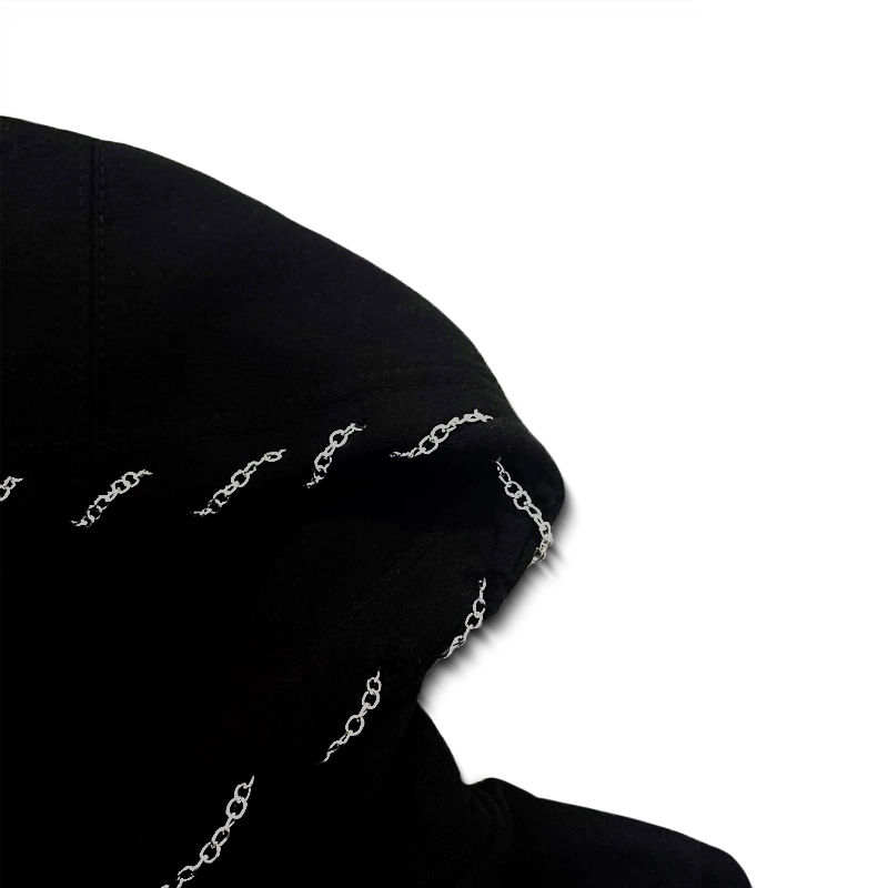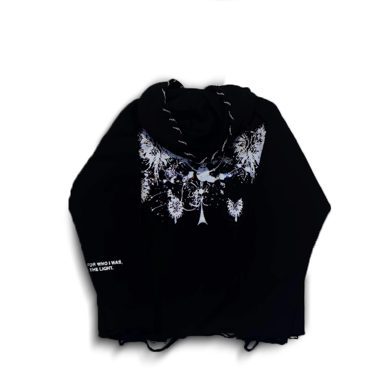 Black heavyweight hoodie with a dtg print. Printed on a 7oz 90% cotton garment with a relaxed fit that holds its shape over time. heavyweight cotton Relaxed fit Front screen print True to size (size up for oversized fit) Limited to 25 pieces. No restocks.